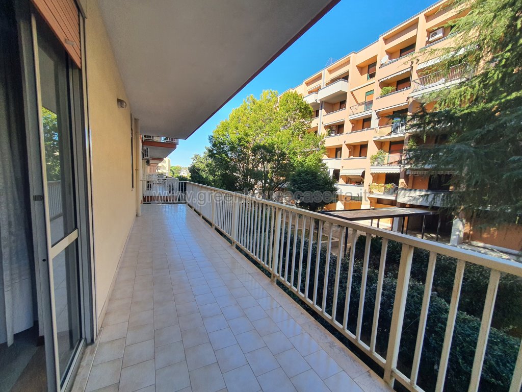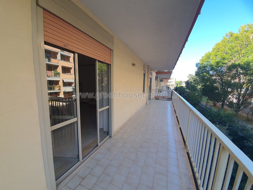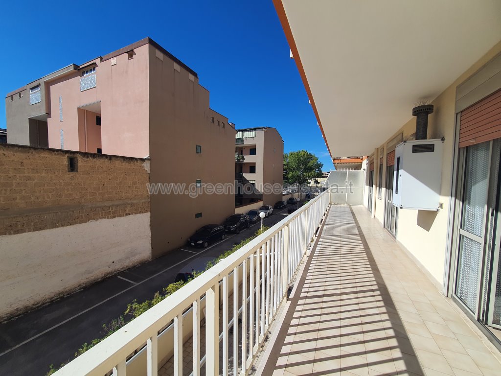doppio ingresso, ampio salone, cucina abitabile, disimpegno, tre camere da letto, due bagni, ripostiglio e due ampie balconate.